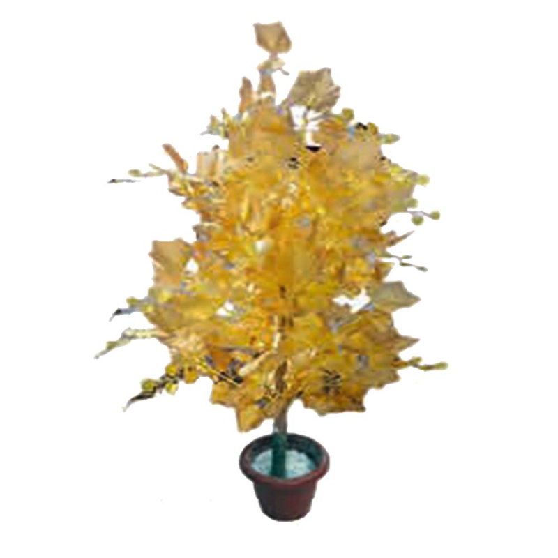 Functionality: Artificial Plastic Plant - Flower Tree with Pot - Golden Colour