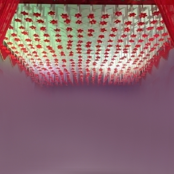 Functionality: 15 FT X 15 FT Ribbon Ceiling - Satin Top - Fabric Ribbon - Red and Peach Color